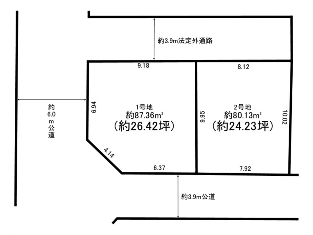 - 南西側 公道3.9m 間口約7.9m