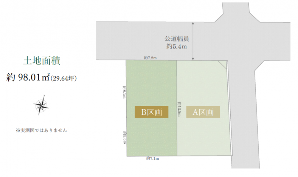 - 北側 公道5.4m 間口約7.2m